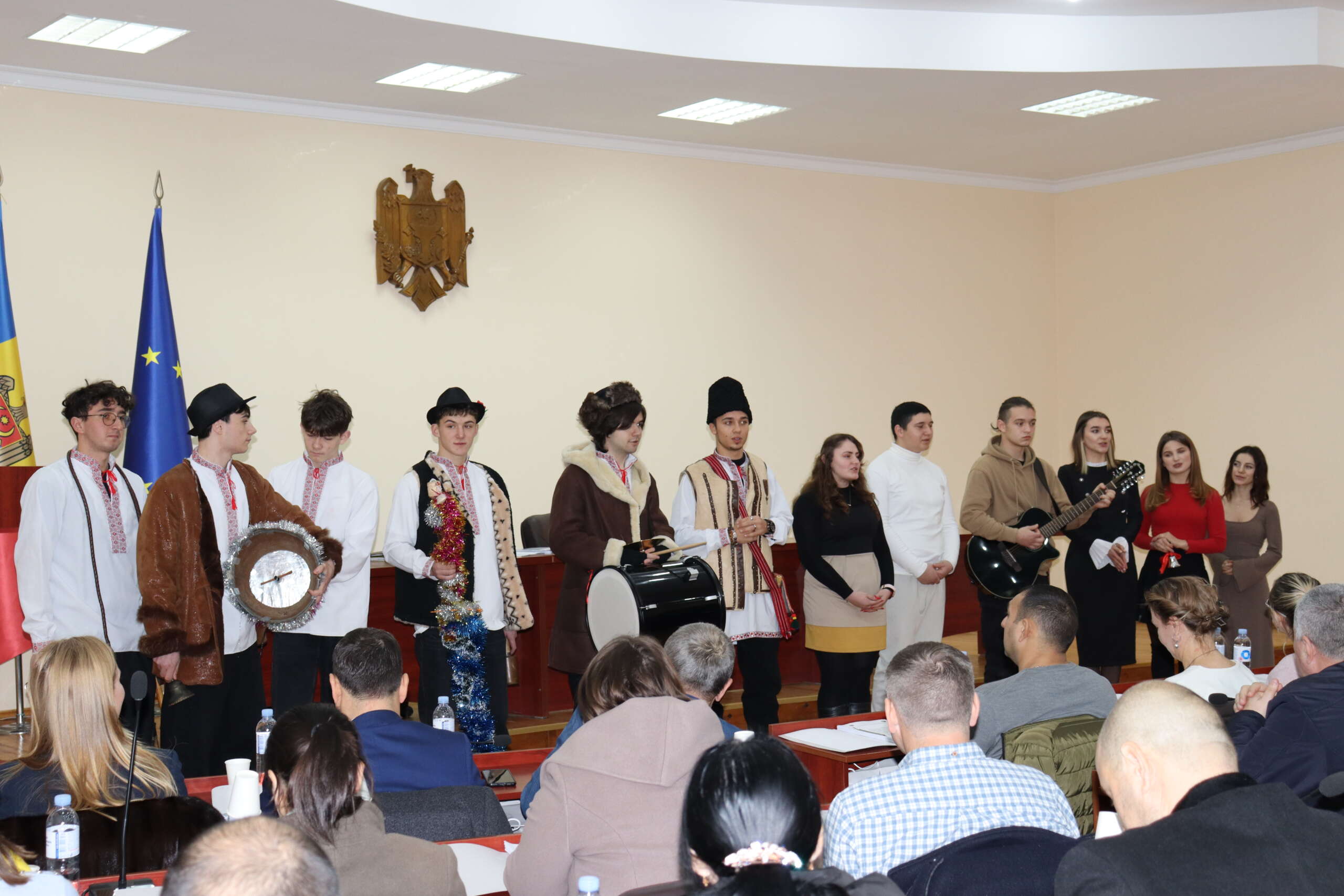 În contextul sărbătorilor de iarnă, ședința de astăzi a fost învăluită de o atmosferă festivă prinde evoluțiile artistice ale colectivelor „Vatra Dorului” și „Dunărencele” din satul Giurgiulești, precum și „Bogheana” din satul Cîșlița-Prut. Ansamblurile au prezentat un program impresionant de colinde, urături și semănături dedicate Nașterii Domnului Isus, aducând un strop de tradiție și bucurie în cadrul evenimentului.