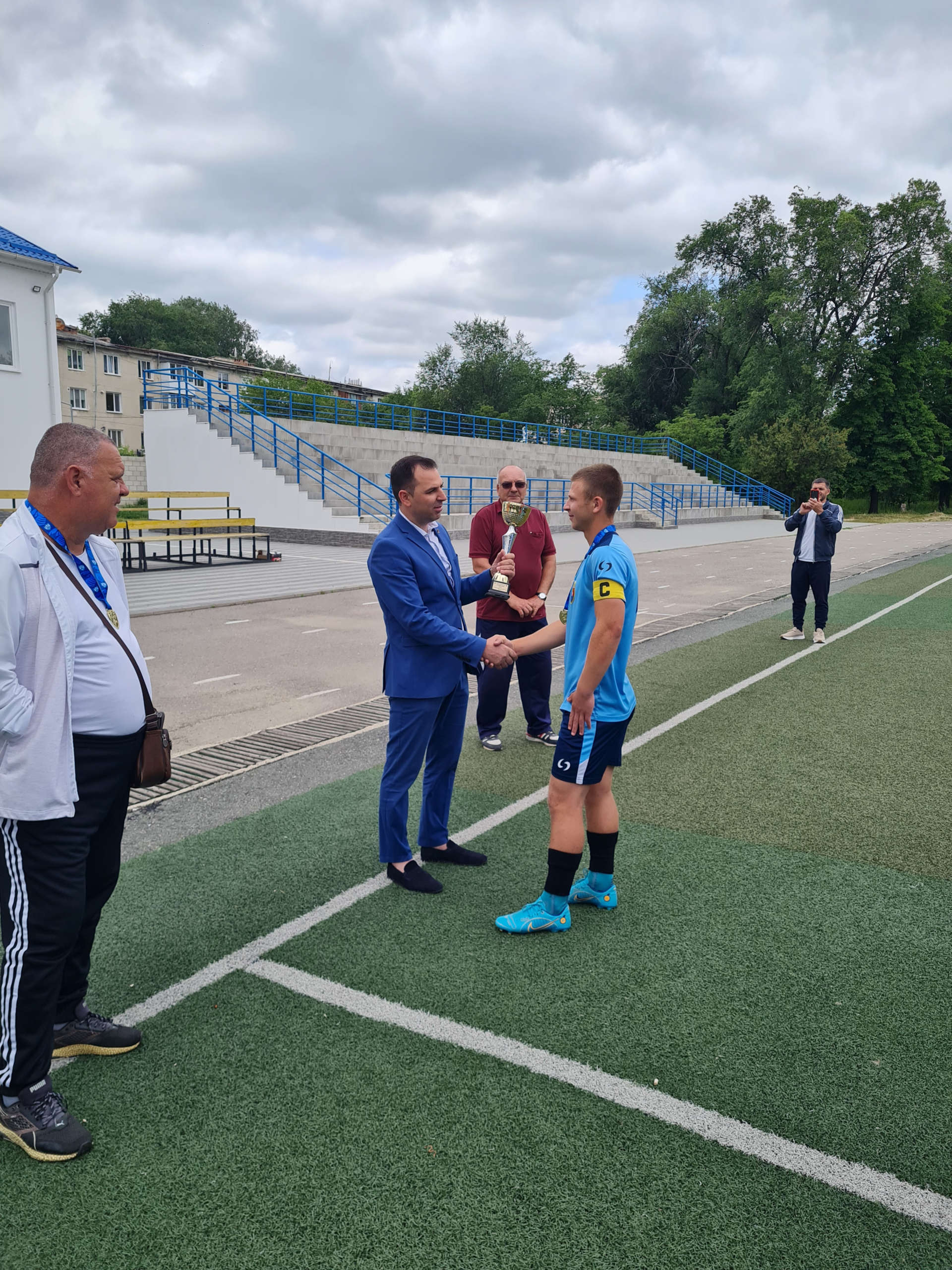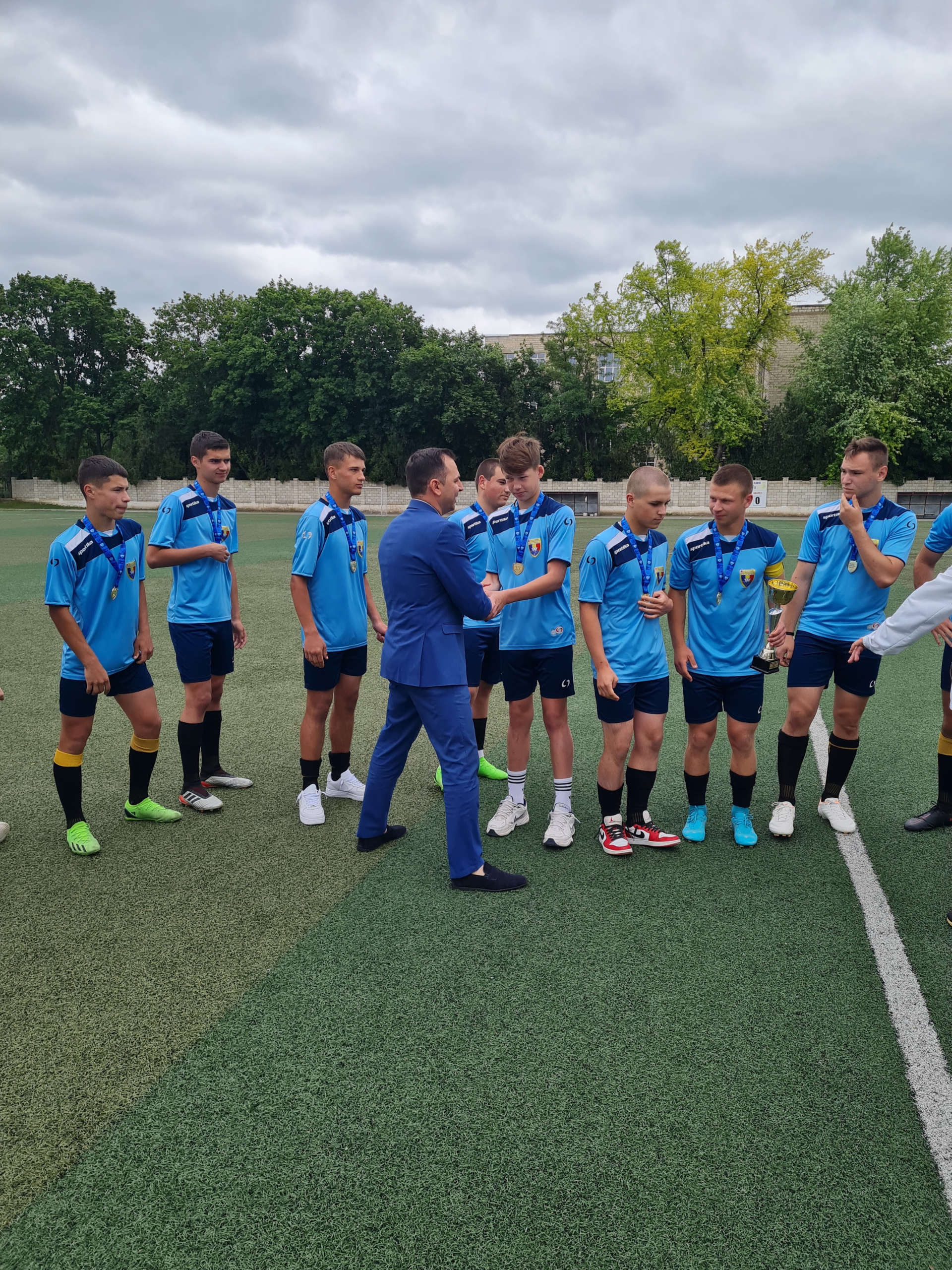 Președintele raionului Cahul, dl Nicolae DUNAS împreună cu coordonatorul FMF la fotbal copii și juniori, dl Ruslan PLOPA, președintele AOCF ”Cahul 2005”, dl Vasili Poroșenco și antrenorul echipei U-17, dl Viorel Crăciun au felicitat jucătorii.