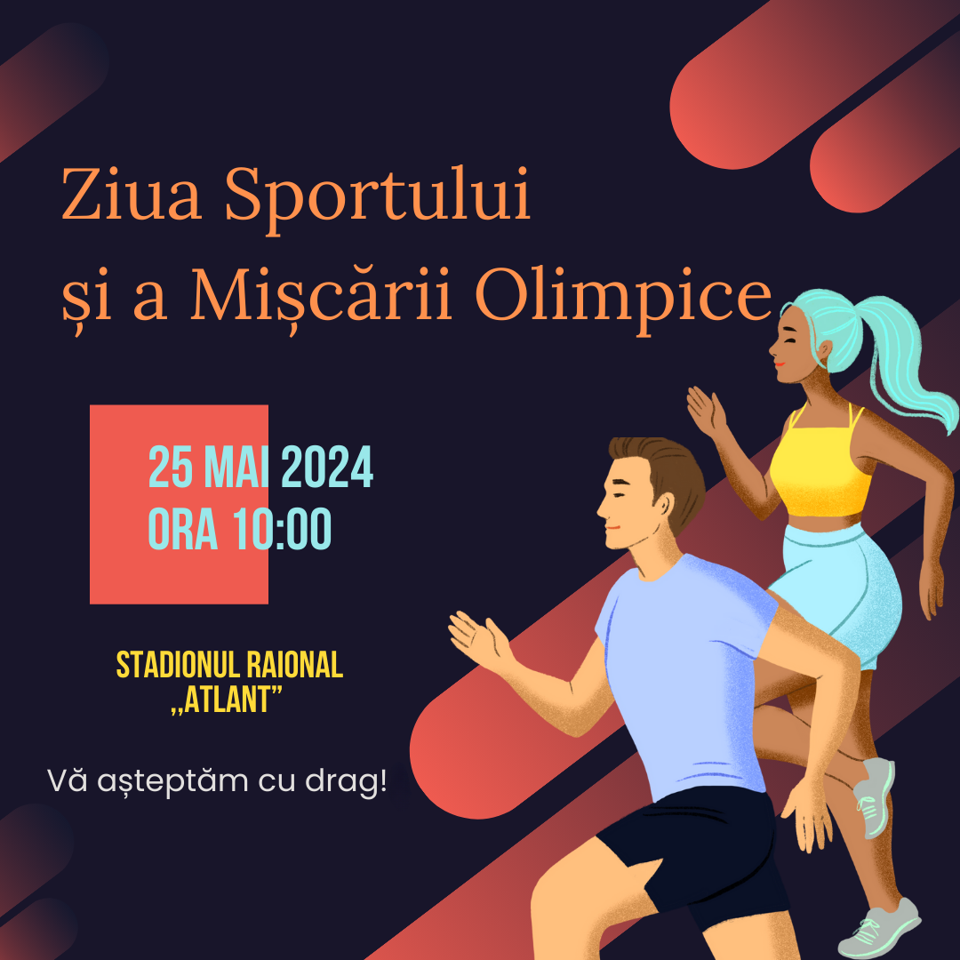 Vă așteptăm cu drag să luați parte la Ziua Sportului și a Mișcării Olimpice, un eveniment dedicat sănătății, energiei și spiritului competitiv, în cadrul căruia participanții vor avea ocazia să participe la diverse competiții și activități sportive, menite să încurajeze un stil de viață sănătos și activ.