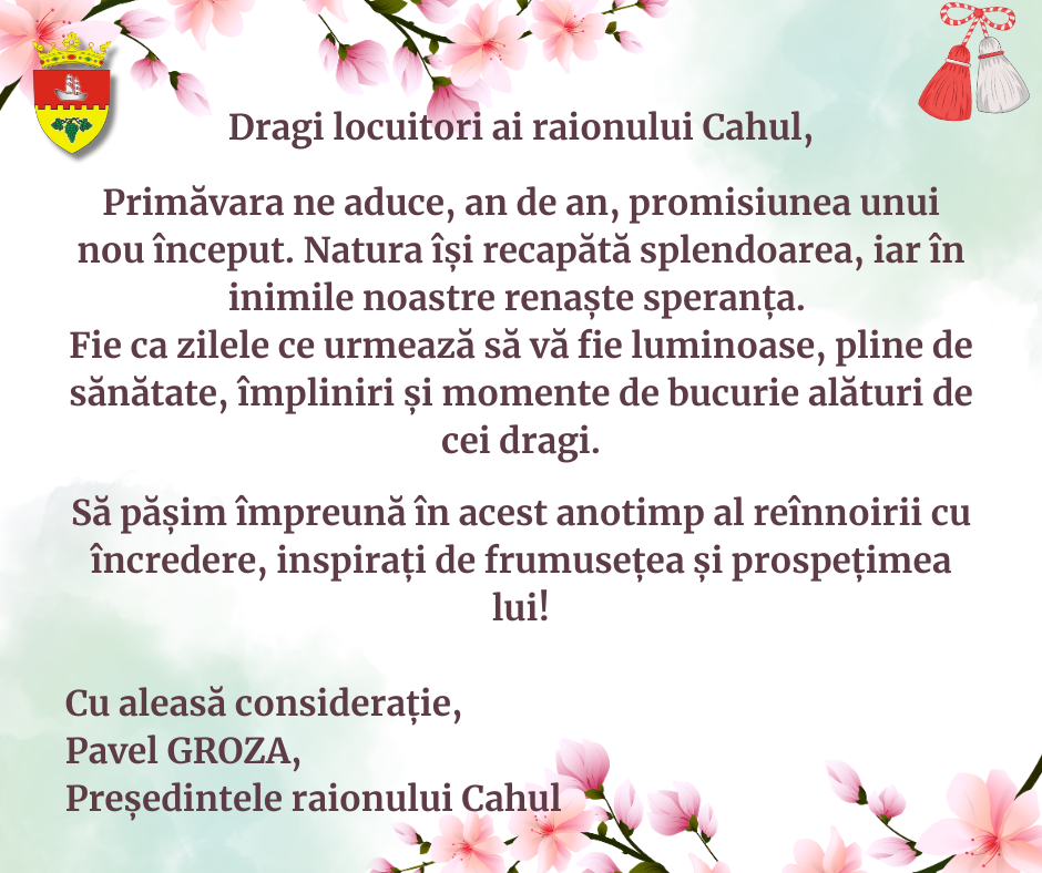 Noutăți Social Mesajul Președintelui raionului Cahul cu ocazia Mărțișorului De admin Postat pe 28/02/2025 0 0 436 Distribuie articolul pe: