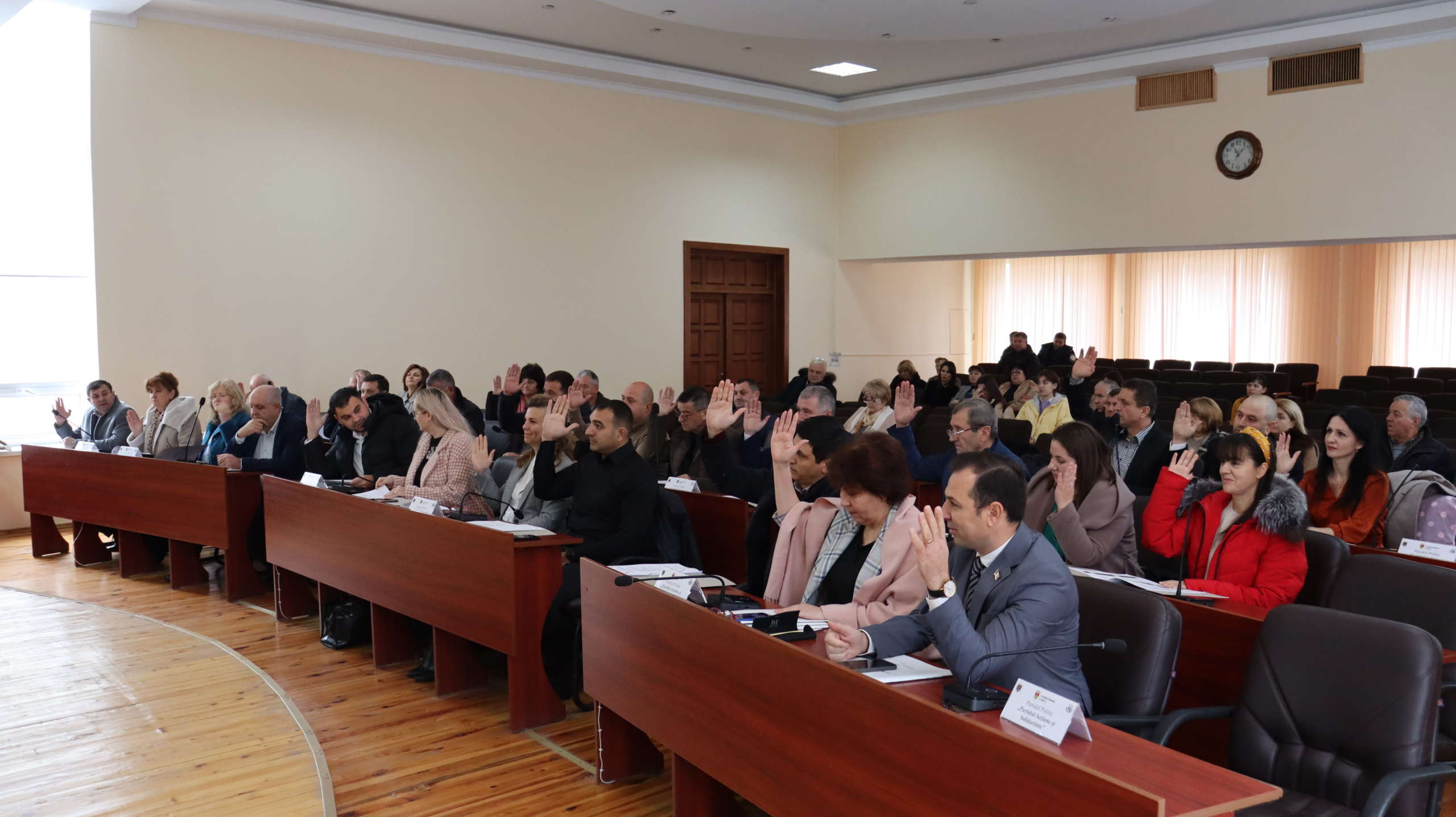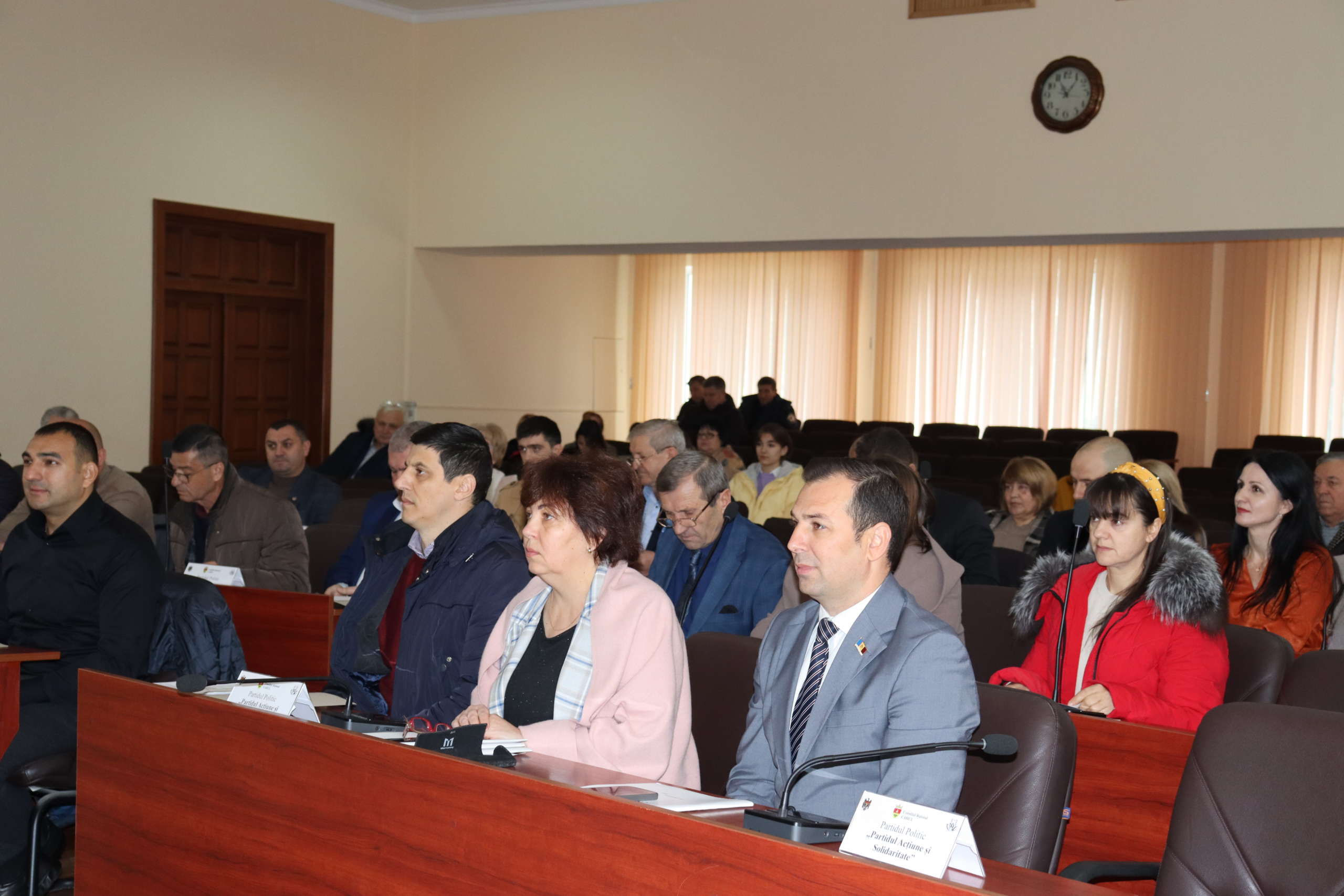 Din cei 35 de consilieri aleși, au fost prezenți 32, ședința fiind prezidată de domnul Valentin Lungu.