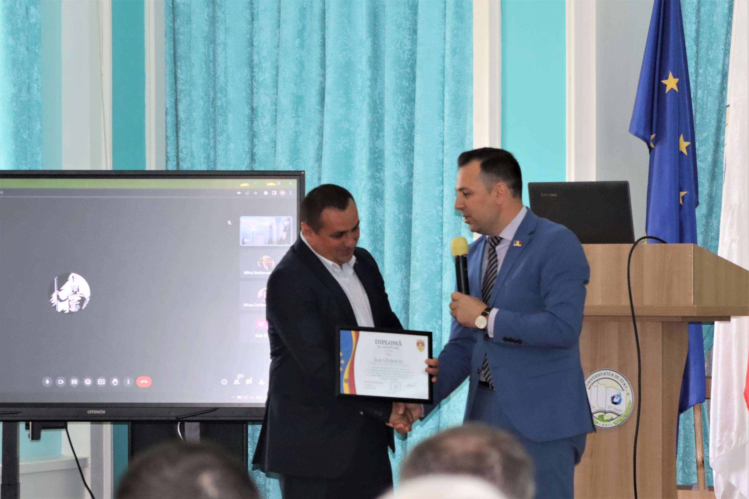 Președintele raionului Cahul, dl Nicolae DUNAS, a felicitat conducerea Universității de Stat ”B.P.Hasdeu” din Cahul, menționând importanța pe care o are instituția în regiunea de Sud a țării și pentru raionul Cahul și asigurând, totodată, disponibilitatea și sprijinul Consiliului raional Cahul în dezvoltarea instituției. În semn de apreciere pentru efortul depus în dezvoltarea și evoluția semnificativă a Universității de Stat ”B.P.Hasdeu” din Cahul în cei 24 de ani de promovare a valorilor educației, cercetării și inovației, președintele raionului Cahul a înmânat conducerii Universității de Stat ”B.P.Hasdeu” din Cahul diplome de gratitudine.